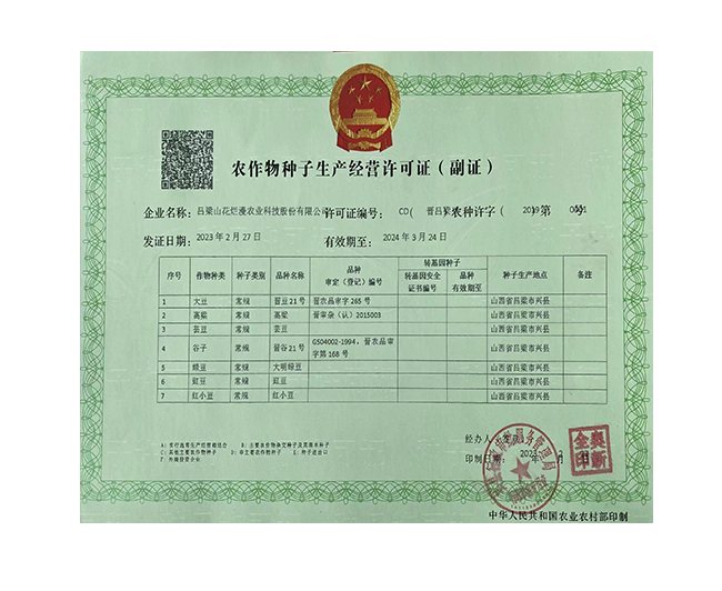 • 農作物種子生產經營許可證(副證)